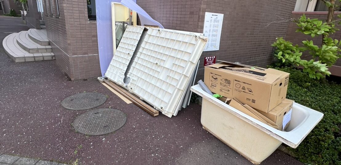 横須賀市改修工事で発生したユニットバスを回収しました