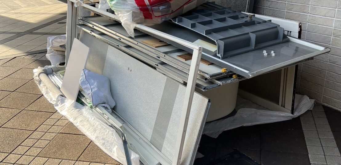 港区改修工事で発生したユニットバスを回収しました